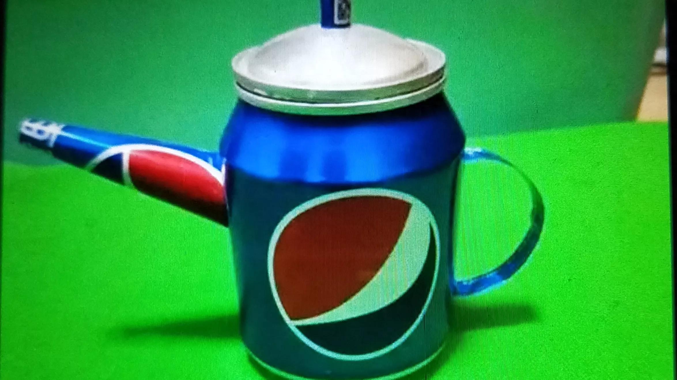 在易拉罐的两头三厘米处分别画上一圈,用小刀沿着线采下来,底座剪两刀,把他们俩套在一起,在另一个易拉罐上取下灌顶和罐底打一圈热熔胶,把它们粘在一起,顶部打一点热熔胶,粘上啦,一个茶壶盖子就做好了,再从易拉罐里裁剪一块铁皮,做一个壶嘴和壶把,一个不会漏水的小水胡就做好了,既好看又实用。