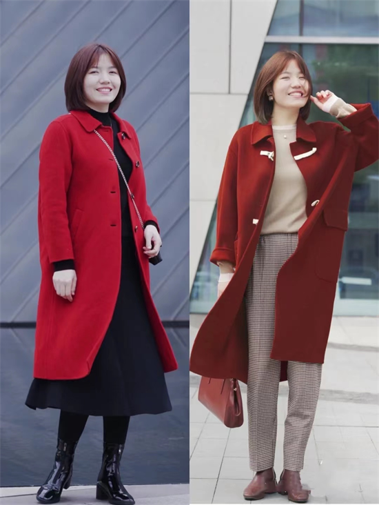 如果你的肤色比较白皙的话可以大胆地尝试一款红色的大衣,用鲜亮大胆的大红色设计方式来呈现出视觉上的鲜亮感,肤色上的优势也能够帮助你更好的驾驭这种鲜亮的大红色,同时在临近过年的时候穿搭,这种鲜艳的大红色也可以彰显出喜庆又热情的感觉。