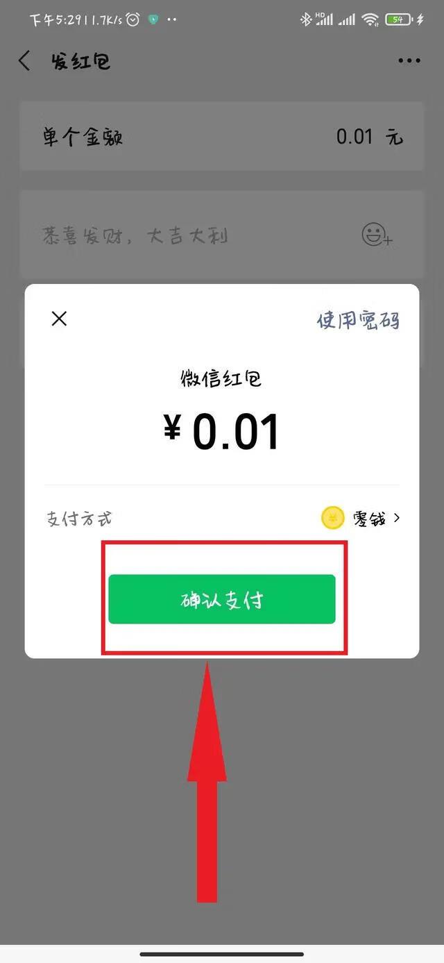 第五步:弹框显示您要发送的金额,确认无误后点击确认支付