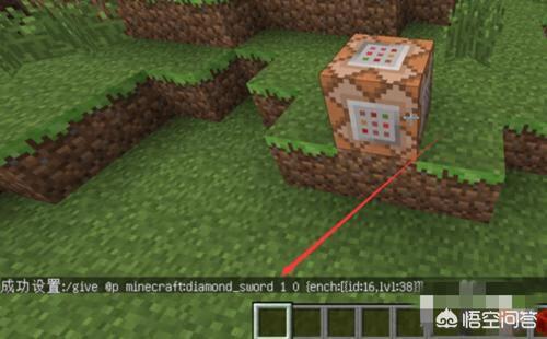 7、放下红石块后就能在物品栏收获一把附魔的武器了,用命令方块附魔就这么简单。
