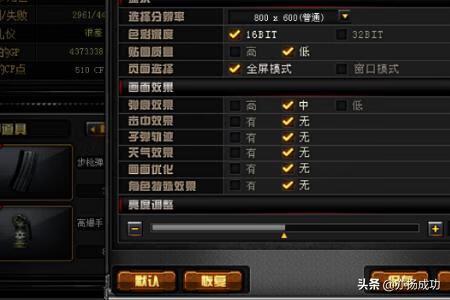 6、最后我们打开游戏,找到右上角的设置选项,色彩深度选择—16位,贴图质量选择——低,下面的动画效果可以根据自己的情况自由选择。最后一定要注意保存退出。